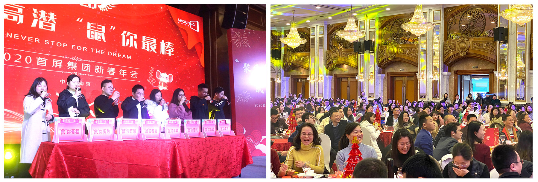 2020年1月19日,“聚焦高潛 鼠你最棒”——2020首屏集團(tuán)新春年會(huì)在維景國(guó)際大酒店圓滿(mǎn)落幕!首屏集團(tuán)南京、南通地區(qū)的近700名同學(xué)相聚一堂,共話團(tuán)圓、喜迎新春。熱鬧喜慶的會(huì)場(chǎng),精彩紛呈的表演、歡樂(lè)趣味的游戲、動(dòng)人心魄的抽獎(jiǎng)...讓年會(huì)格外熱鬧、驚艷?,F(xiàn)場(chǎng)的每個(gè)角落都充斥著新春的喜悅,每個(gè)人臉上都洋溢著快樂(lè)的笑容,每個(gè)瞬間都成為大家心中美好的回憶。